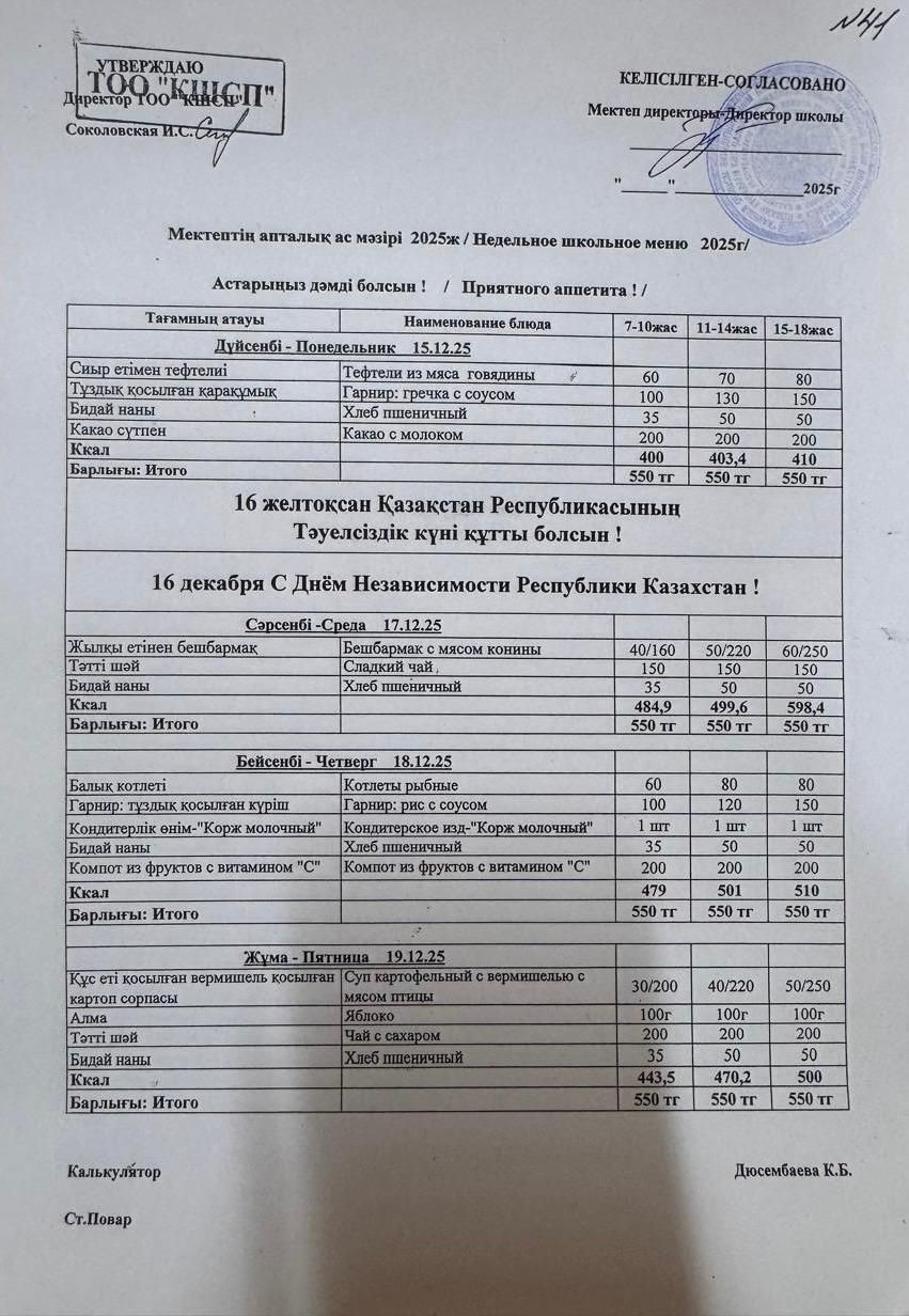 Ас мәзірі 16.12.2025-19.12.2025